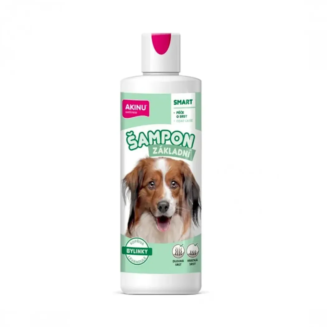 Máte doma štvornohého kamaráta milovníka bahna, prachu a všetkých možných „ozdôb“ psej srsti? Doprajte mu šetrnú, ale účinnú starostlivosť, ktorá si poradí s nečistotami rýchlo a bez zbytočného vysušovania. Akinu Šampón základný pre psov je ideálnou voľbou pre pravidelnú hygienu – zanechá srsť čistú, hebkú a sviežo prevoňanú. Šampón obsahuje výťažky z levandule a žihľavy, ktoré prispievajú k prirodzenej starostlivosti o kožu aj srsť. Vďaka svojmu zloženiu podporuje regeneráciu ochranného kožného filmu po umytí a je vhodný aj pre suchú kožu a srsť. Navyše má jemné repelentné účinky.