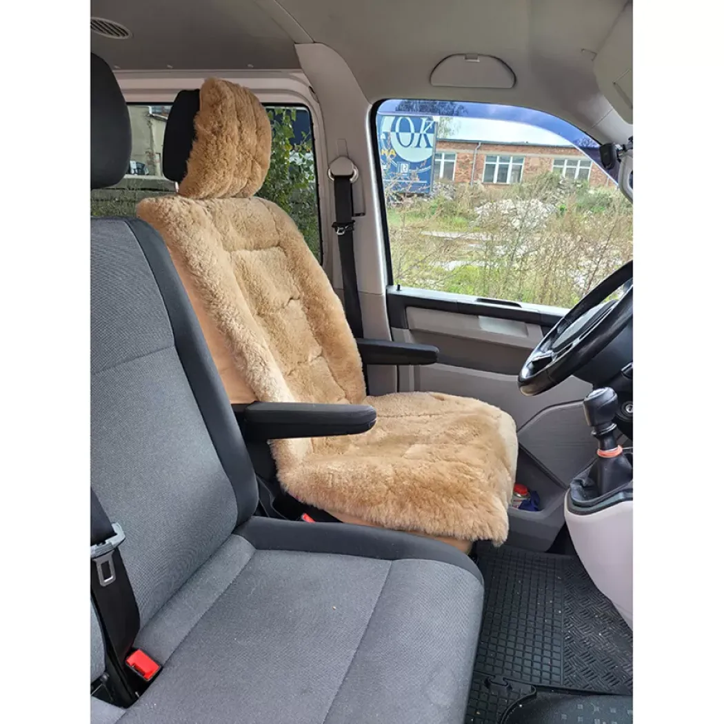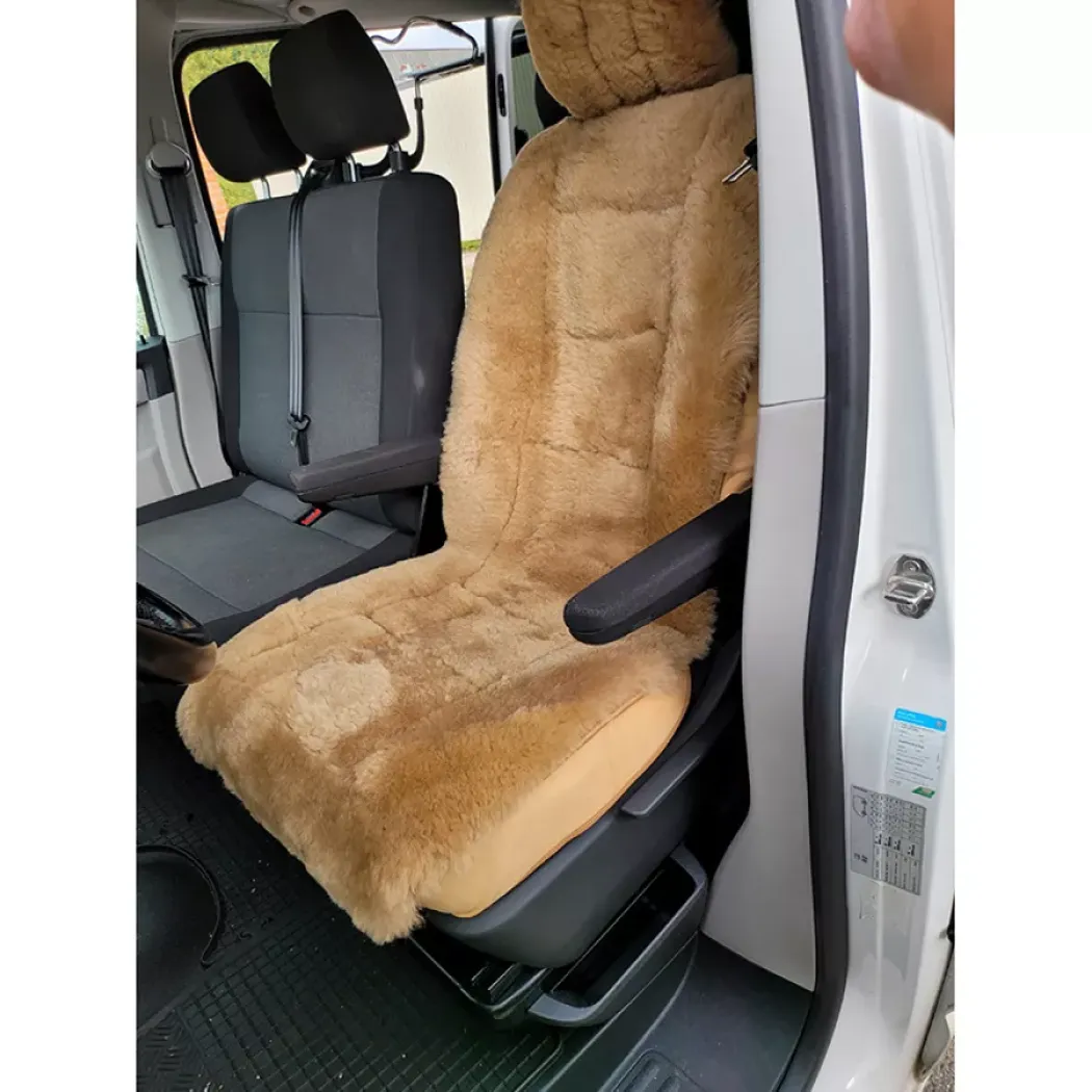Sedák do auta z ovčej kožušiny je vyrobený z kvalitnej ovčej kože, ktorá má výborné termoregulačné vlastnosti. V zime prehrieva a v lete chladí. Sedák z ovčej kože je možné upevniť a prispôsobiť na všetky druhy jednosedadlových sedačiek v automobile. V dolnej časti a zozadu má nastaviteľné gumové popruhy a pracky na uchytenie za opierku a okolo sedadla, takže jeho uchytenie je veľmi jednoduché a prispôsobiteľné akejkoľvek autosedačke. Koža s ovčou vlnou je predĺžená až na opierku hláv viď. obrázok.
