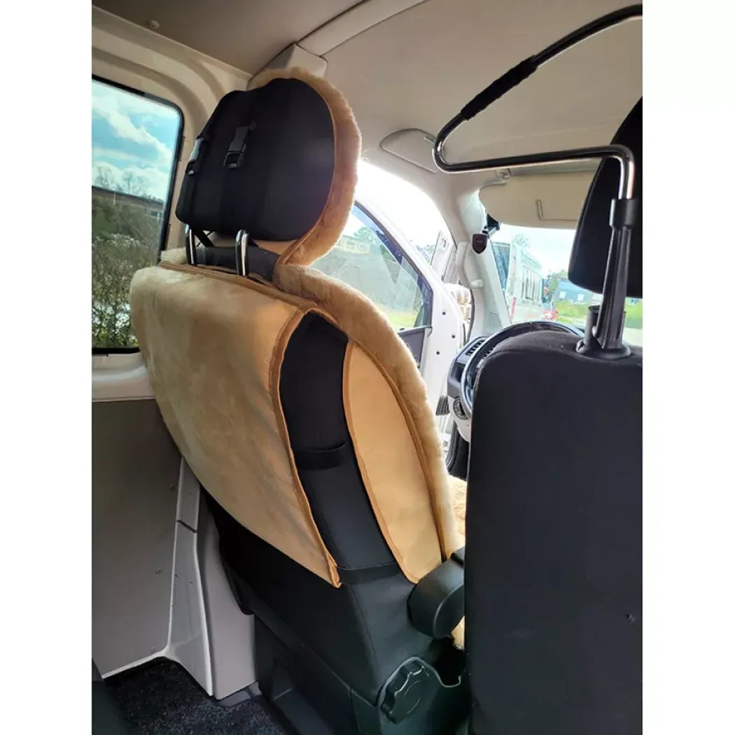 Sedák do auta z ovčej kožušiny je vyrobený z kvalitnej ovčej kože, ktorá má výborné termoregulačné vlastnosti. V zime prehrieva a v lete chladí. Sedák z ovčej kože je možné upevniť a prispôsobiť na všetky druhy jednosedadlových sedačiek v automobile. V dolnej časti a zozadu má nastaviteľné gumové popruhy a pracky na uchytenie za opierku a okolo sedadla, takže jeho uchytenie je veľmi jednoduché a prispôsobiteľné akejkoľvek autosedačke. Koža s ovčou vlnou je predĺžená až na opierku hláv viď. obrázok.