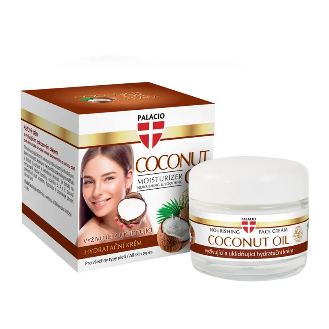 Pleťový krém s vyživujúcim kokosovým olejom proti starnutiu pleti a tvorbe vrások pre normálnu a suchú pleť. Prírodný vyživujúci krém s kokosovým bio olejom je vhodný na dennú i nočnú starostlivosť. Kokosový olej pokožku dokonale premasťuje a dodáva jej pružnosť a hodvábnu jemnosť. Je bohatý na nenasýtené mastné kyseliny, vitamíny E, A a F, pôsobí preventívne proti vráskam, hydratuje a spomaľuje proces starnutia pleti.