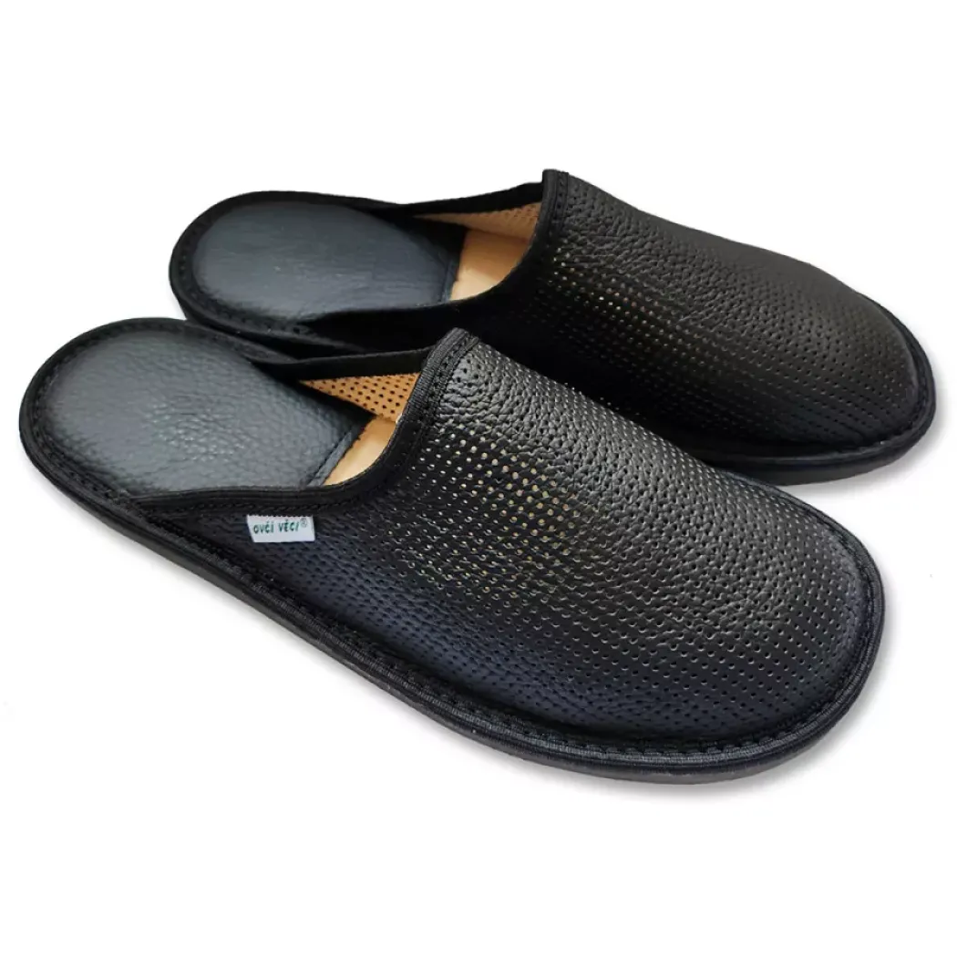 Objavte pánske šľapky z kvalitnej prírodnej kože so špeciálnym perforovaným dizajnom pre maximálnu vzdušnosť a komfort. Vďaka odpruženej gumovej podrážke tieto papuče efektívne tlmia nárazy pri chôdzi, čo oceníte najmä pri dlhšom nosení. Sú odľahčené a ideálne na vnútorné používanie - skvelá voľba pre domáce pohodlie alebo kancelárske prostredie.