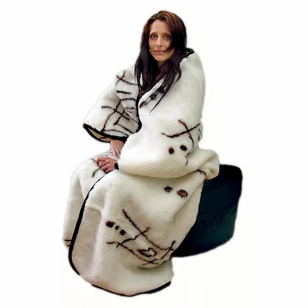 Televízny vak z kvalitnej ovčej vlny so zapínaním v hornej i dolnej časti na zips pre chladné dni k televízii alebo napr. na chalupu. Rozopnutím TV vrecia vznikne klasická deka s rozmermi 160 x 200 cm.